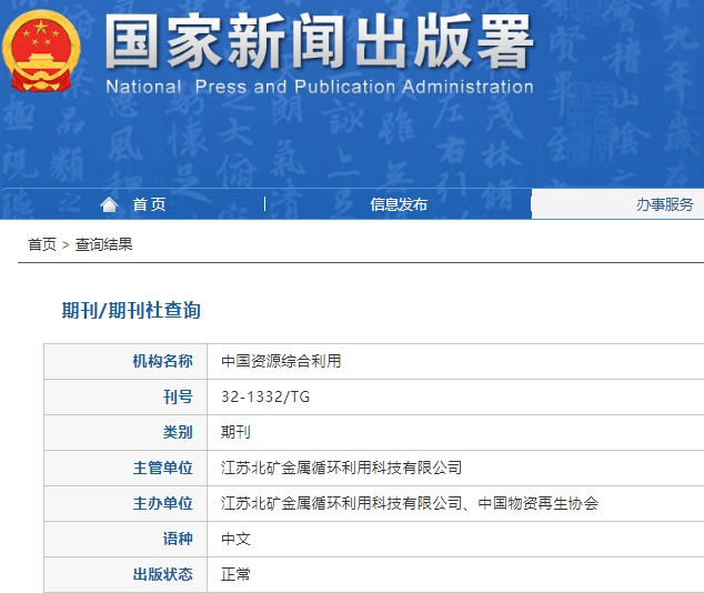 主管单位:江苏北矿金属循环利用科技有限公司
